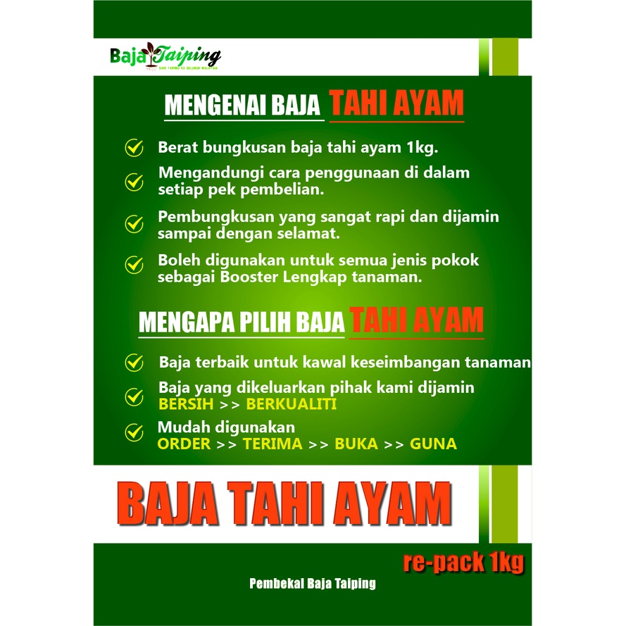 Pilih baja sama ada kompos vermikompos tayam tahi kambing kopi npk15. Gerenti gemuk dan subur sawi anda. Membekal baja organiks tahi ayam sendiri angkat harga lagi murah hubungi 013.